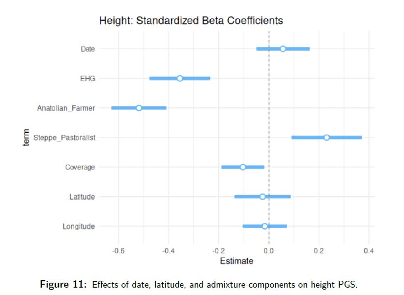 Yet it is disappointing to note that our prior work, which directly anticipated key findings here, remains uncited. Our 2024 study (Piffer & Kirkegaard) first demonstrated that Neolithic European height declines were partially genetic rather than solely environmental, using similar PGS approaches. My paper on the genetics of the Steppe Pastoralists (Piffer, 2025) also showed how the Yamnaya were genetically much taller than the Anatolian farmers, yet it also went uncited. Instead, Cox et al. (2025) cite Akbari et al., who themselves overlooked our work despite addressing similar questions about ancient DNA.