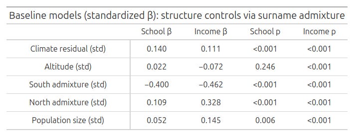 In other words: once you control for the north–south demographic structure, is there still anything left for climate to explain?