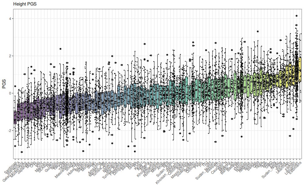 When we look at groups rather than individuals, we can calculate an average PGS for each population.
