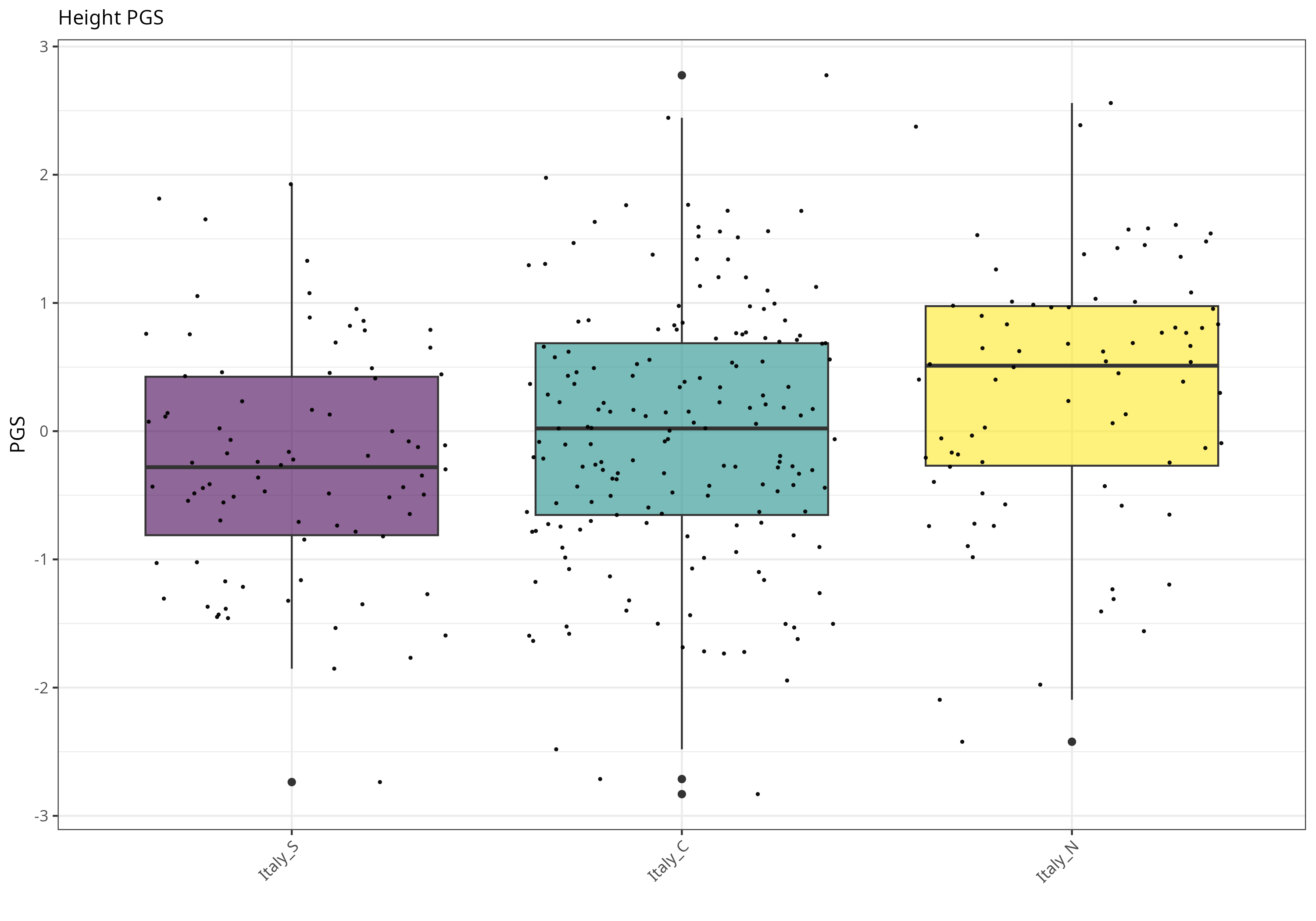 I computed polygenic scores for three traits with well-known North–South gradients in Italy: