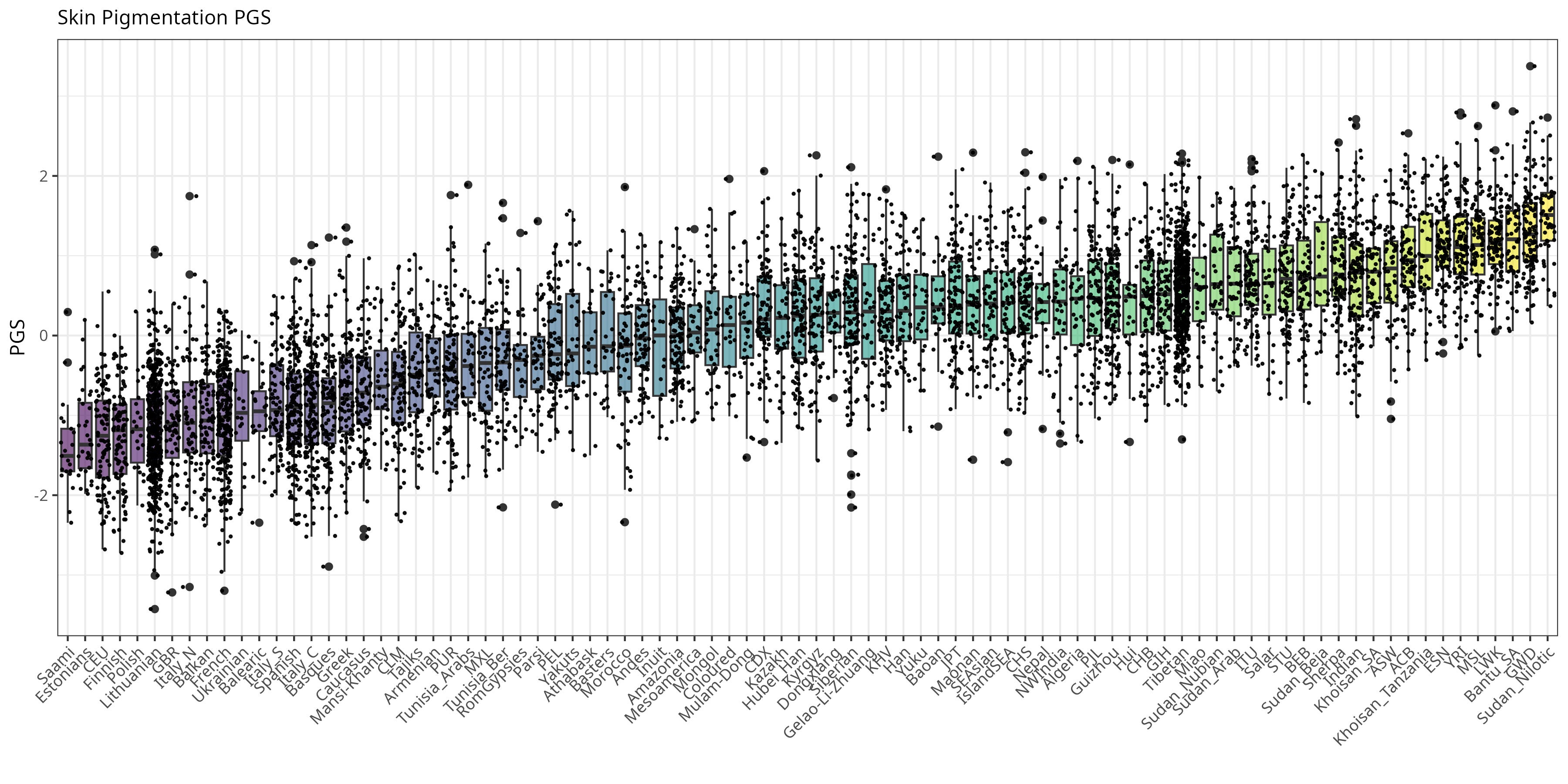 Figure 1. Skin pigmentation polygenic scores across 86 modern populations.