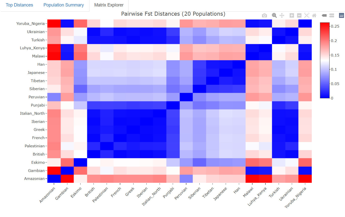Interactive Heatmap: Visualize genetic distances between populations in an intuitive color-coded matrix