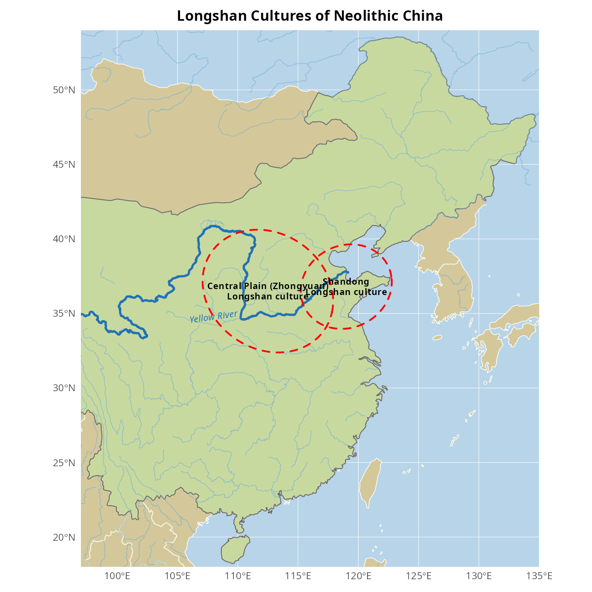 The Longshan culture refers to a Late Neolithic archaeological horizon (c. 2500–2000 BCE) spanning much of the middle and lower Yellow River basin. It is named after Longshan town in Shandong, where distinctive thin-walled black pottery was first identified.