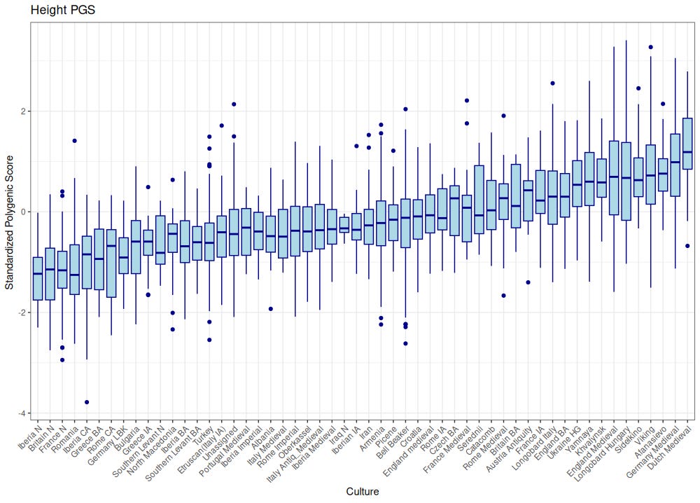 Historical accounts describe Medieval Dutch and Vikings as exceptionally tall—and now DNA evidence backs this up. By calculating polygenic height scores (a genetic prediction of how tall someone could grow based on their DNA), I found these groups had the highest potential for height.